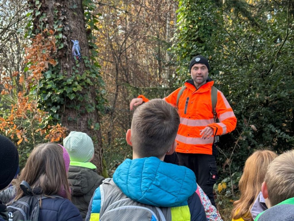 Am Donnerstag, den 13.11.2025, waren die Klassen 3/4A und 3A aus dem Schulhaus Amerang im Ameranger Wald beim Förster. Der Förster hieß Tobias Büchner. Mit ihm machten wir viele Spiele, sodass wir etwas über Waldtiere und den Wald lernten. Das fanden alle toll. Auch die Aufgaben des Försters standen auf dem Programm. Passenderweise war der Wald auch unser HSU Thema. Wir durften viel Neues zum Wald und seinen Bewohnern erfahren. Vielen Dank dafür!