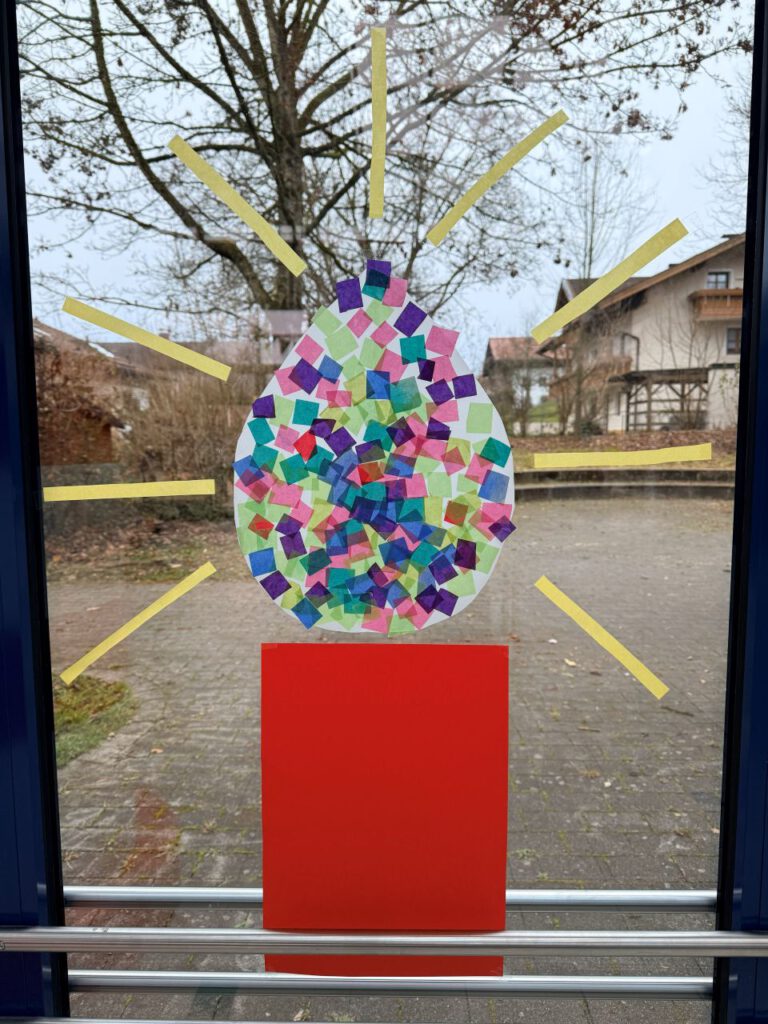 Mit vielen kleinen Aktionen passend zu diesem Motto stimmten sich die Kinder der Grundschule Amerang an den Schulhäusern in Amerang und Schonstett auf Weihnachten ein. Mit der Frage, wie wir alle zu diesem „Licht“ werden und Helligkeit ins Dunkel bringen können, beschäftigte sich die erste Adventsbesinnung. Nachdem die Kinder Beispiele nannten, wann es sich denn „dunkel“ anfühlt – zum Beispiel, wenn es Streit gibt oder ich traurig bin – wurde den Kindern mit einem kleinen Schauspiel einzelner Kinder der 4A gezeigt, wie stark das „Licht“ in jedem sein kann, wenn man zusammenhält. Um dieses „bunte Licht“ bei uns an der Schule zu verdeutlichen, konnten die Kinder im Laufe der Adventszeit ein großes Licht mit kleinen bunten Papierschnipseln zum Leuchten bringen.